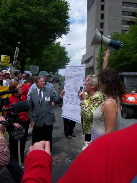 Seven years in, the organization rebrands. Carolinas Clean Air Coalition renames itself Clean Air Carolina to place clean, healthy air first and foremost in everything we do. The name change follows years of organizing opposition against the Cliffside coal plant, which culminates in our first non-violent civil disobedience rally. Over 350 concerned residents (43 of whom are arrested) come together to deliver our “A Call to Conscience” message to Duke Energy CEO Jim Rogers.