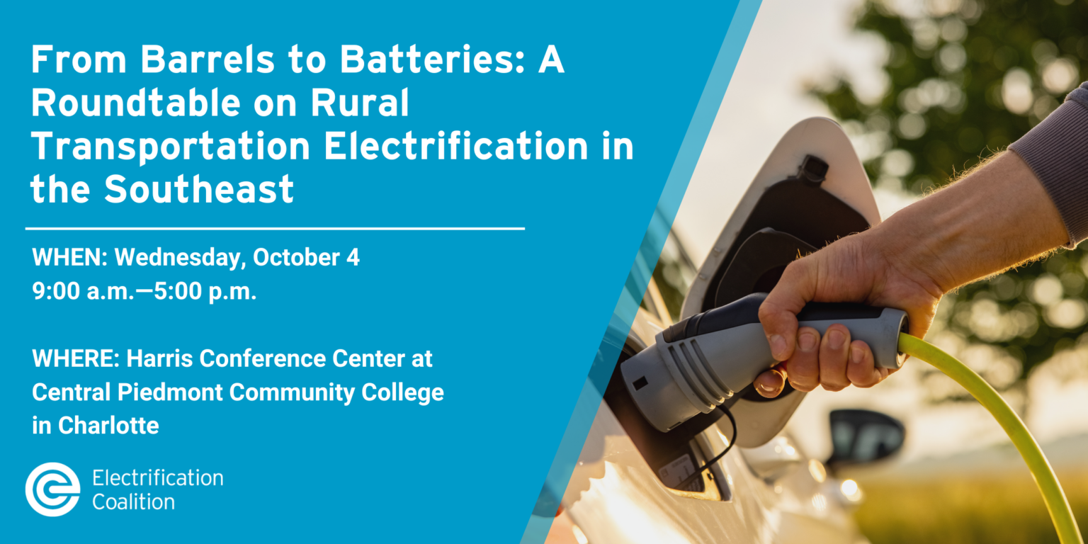 Join local and state leaders for a roundtable discussion on vehicle electrification in the rural southeast. The rapid growth in electric vehicles (EVs) today is part of a fundamental shift in transportation. All Americans and communities can benefit from the lower operating costs and increased economic development opportunities. Implementing charging infrastructure will also require a large-scale on-the-ground effort, which will create high-quality jobs for rural communities in North Carolina, South Carolina, Georgia, and Florida.
